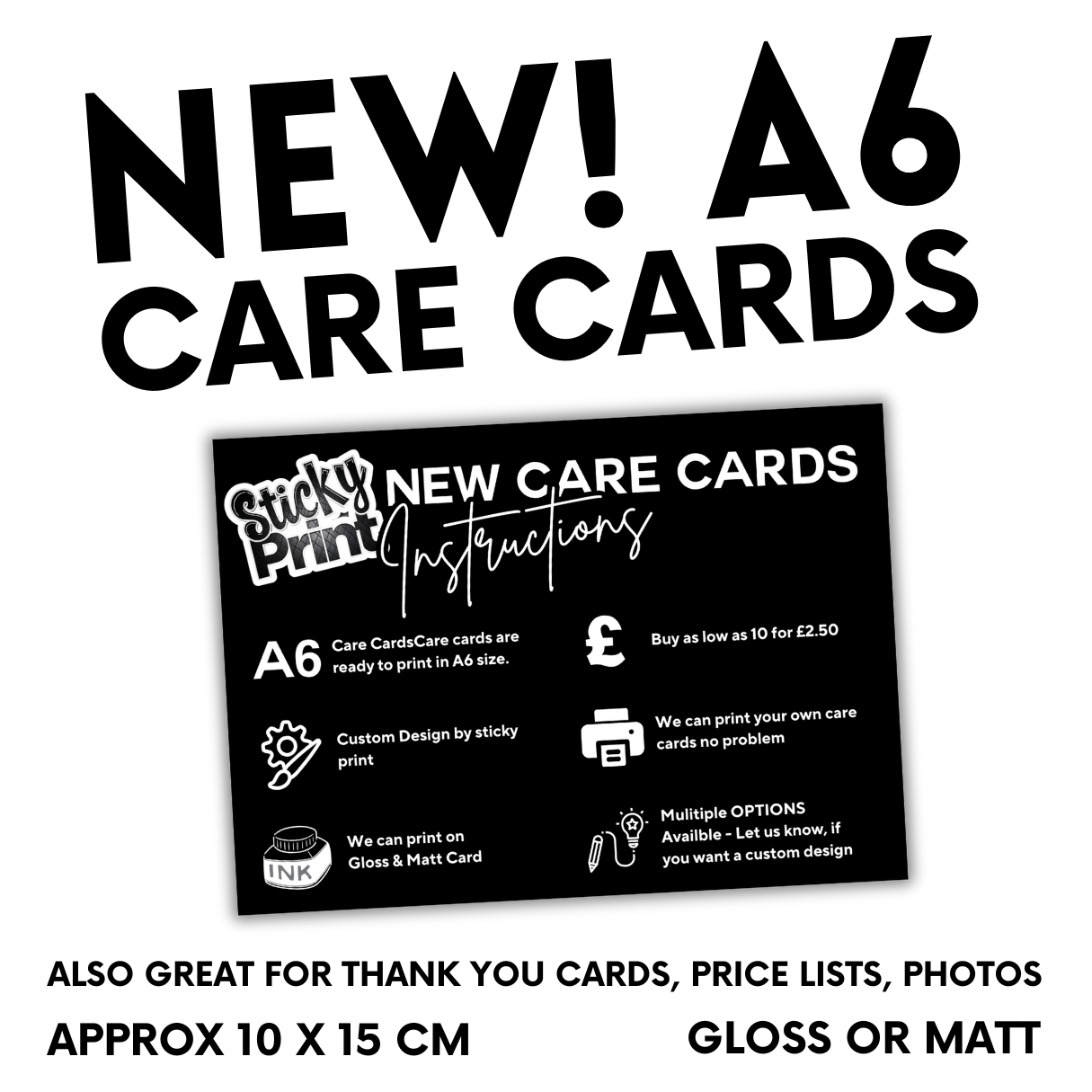 A6 Cards printed with Care Cards, Thank You notes, and Price Lists offer a professional and convenient way to communicate important information to your customers. These compact cards are perfectly sized to fit in wallets or display stands, making them ideal for salons, boutiques, or service providers. Printed on quality cardstock, they ensure your messages stand out with clarity and style. Use them to express gratitude, share care instructions, or clearly present your pricing, enhancing customer experience and encouraging repeat business. Elevate your brand’s communication with these versatile and practical A6 printed cards.